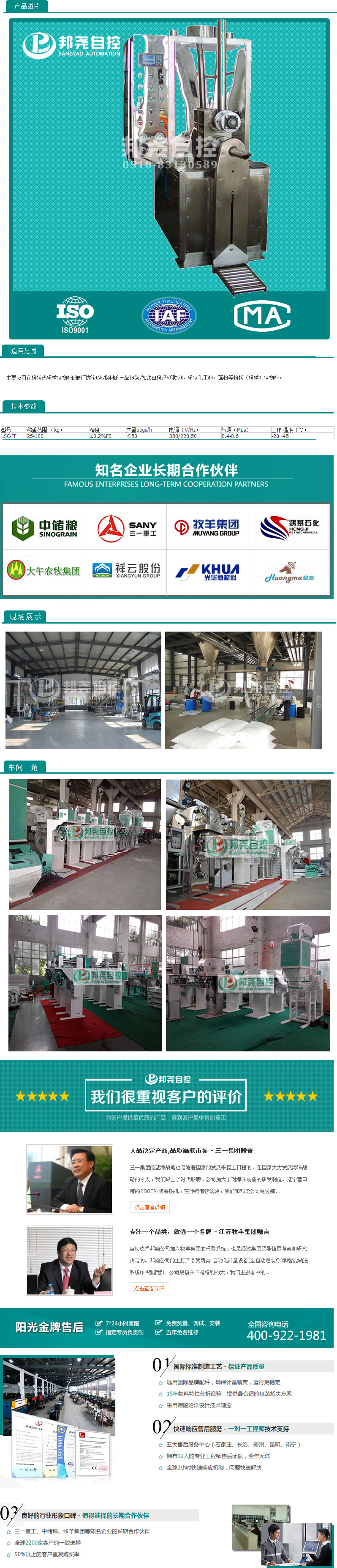 主要應用在粉狀或粉粒狀物料的閥口袋包裝,物料的產品包裝,如鈦白粉,PVC助劑,粉狀化工料,面粉等粉狀(粉粒)狀物料。